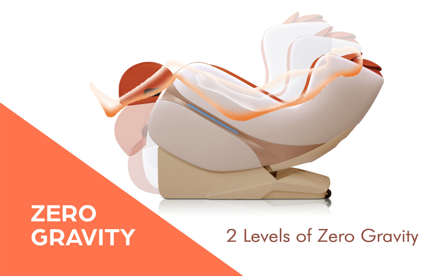 2 levels of zero gravity : reclination that raises your feet above heart level and evenly distributes your body weight that maximizes comfort and relaxation as it improves your breathing, blood circulation and body posture.
