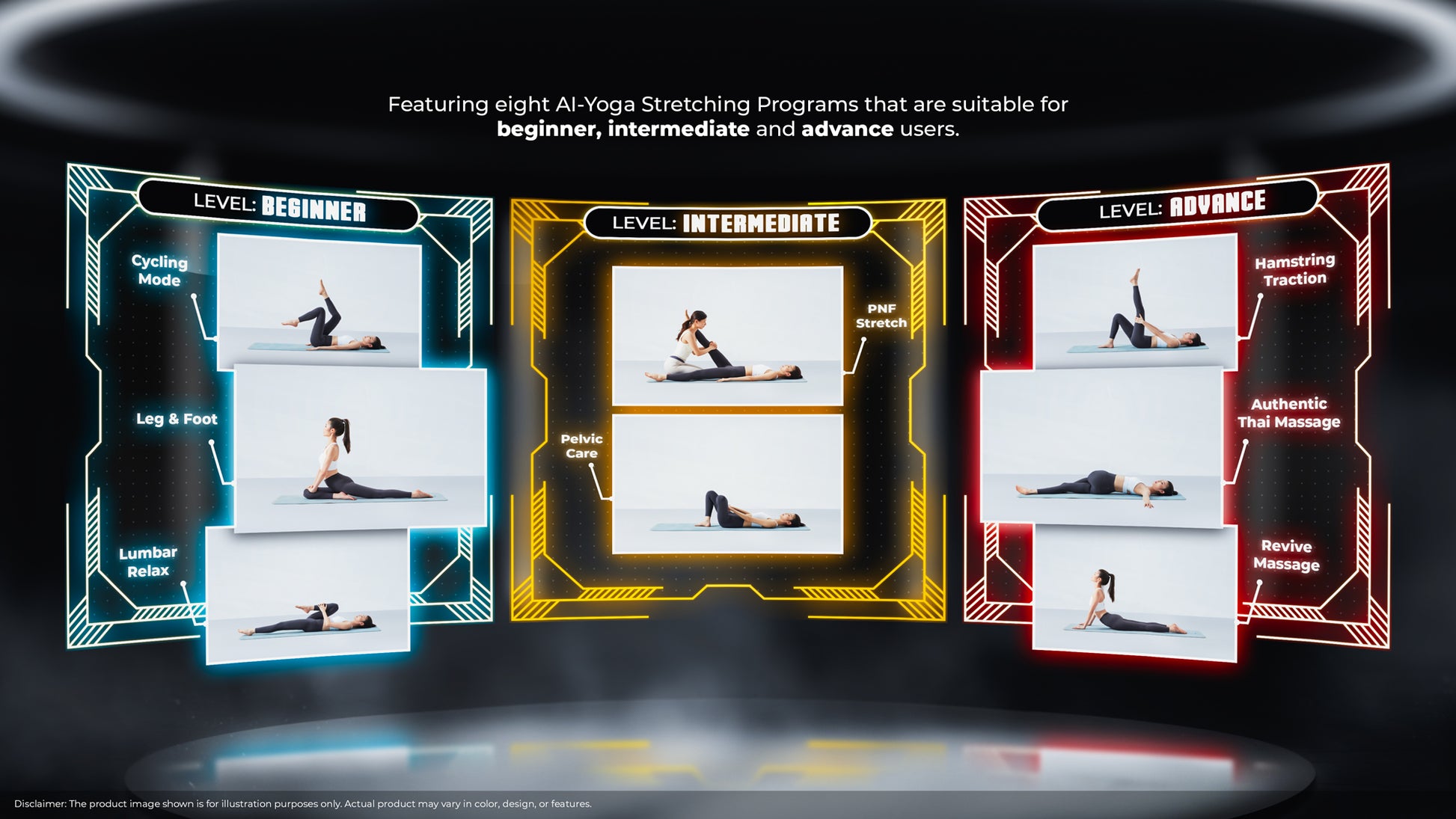 Includes 8 AI-Yoga Stretching Programs for all levels (beginner to advanced)